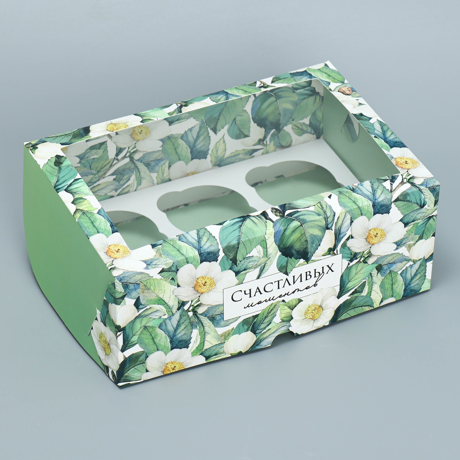 Коробка для капкейков складная с двусторонним нанесением «Счастливых моментов», 25 х 17 х 10 см