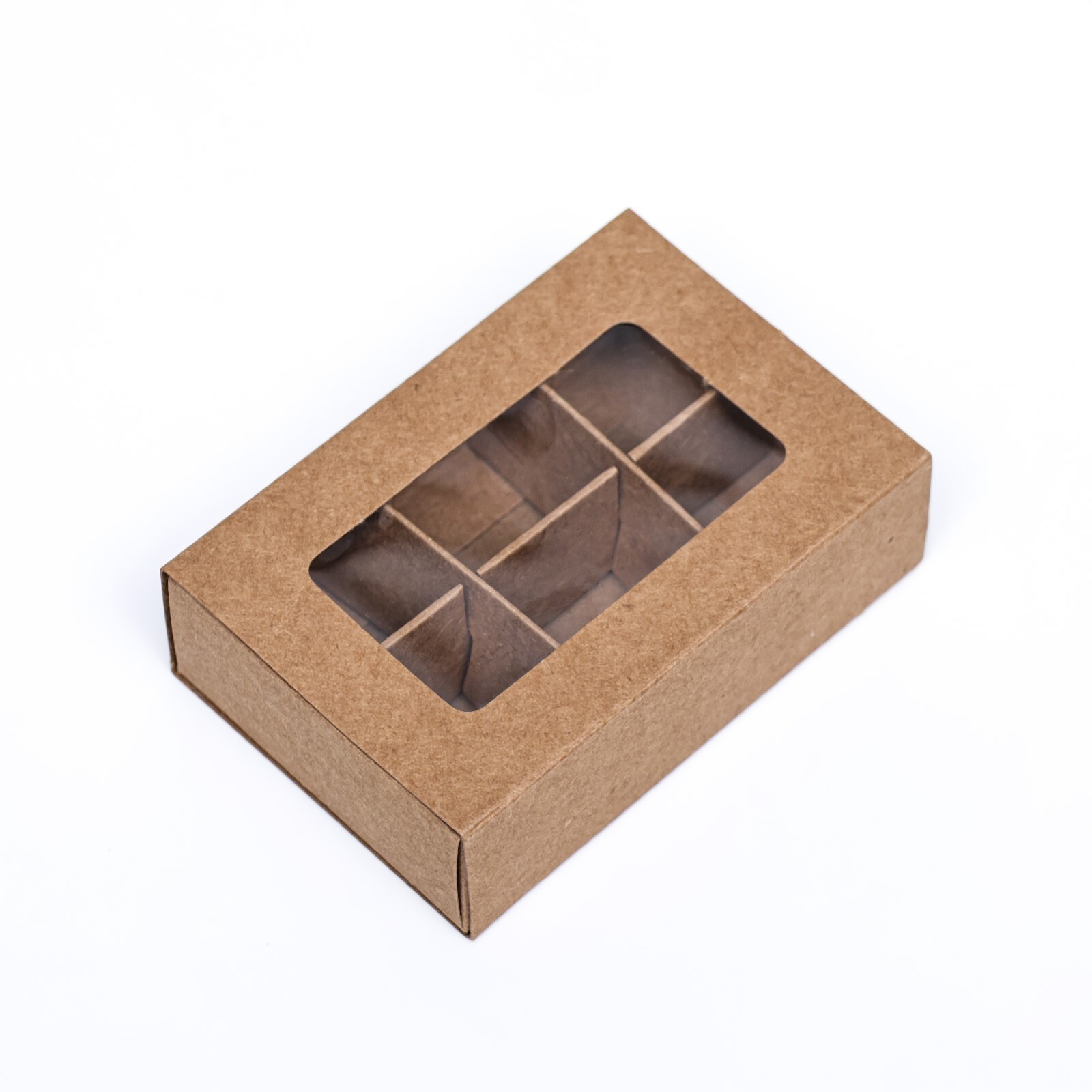Коробка-мини для конфет 6 штук, 8,7 х 5,8 х 2,5 Тонкие разделители, Крафт