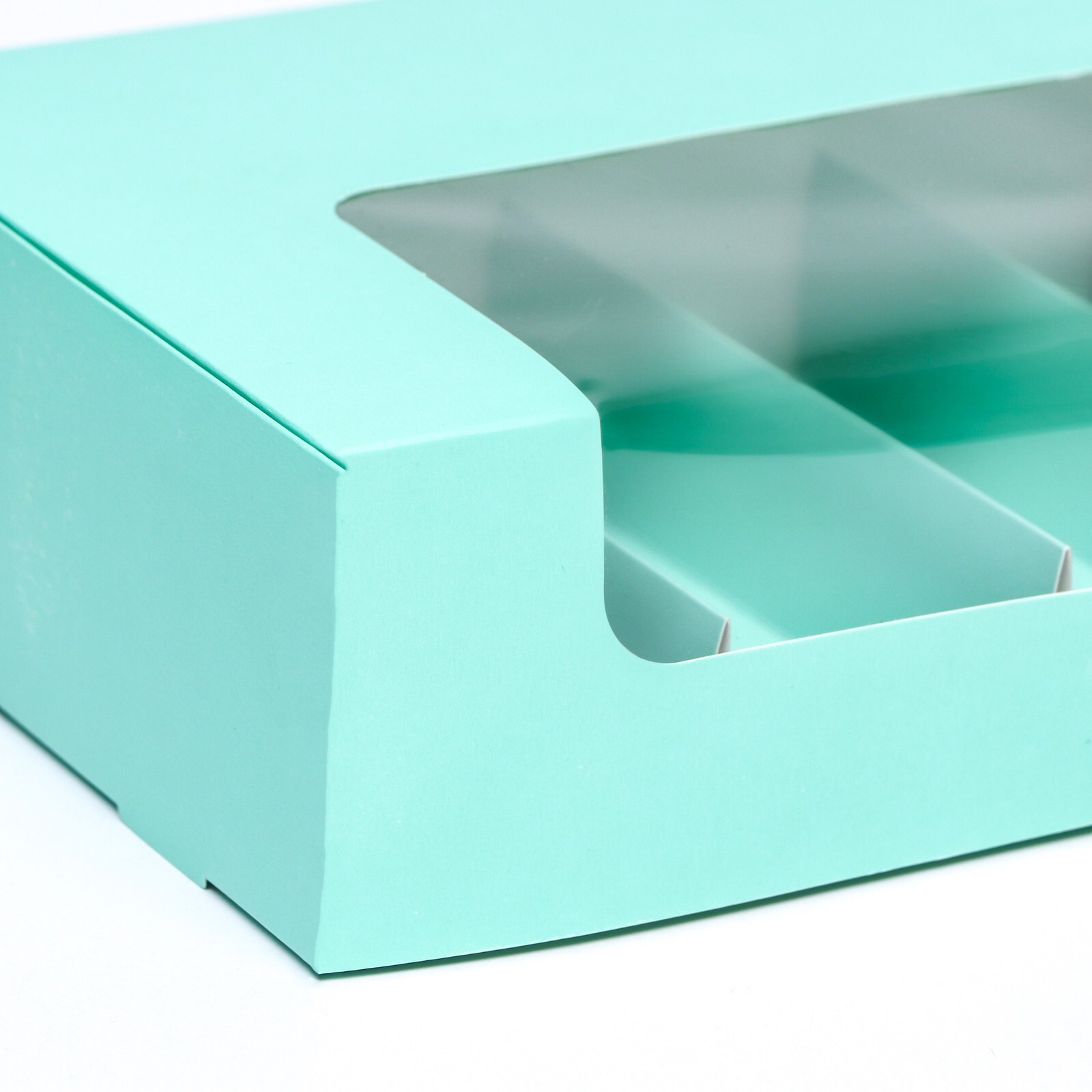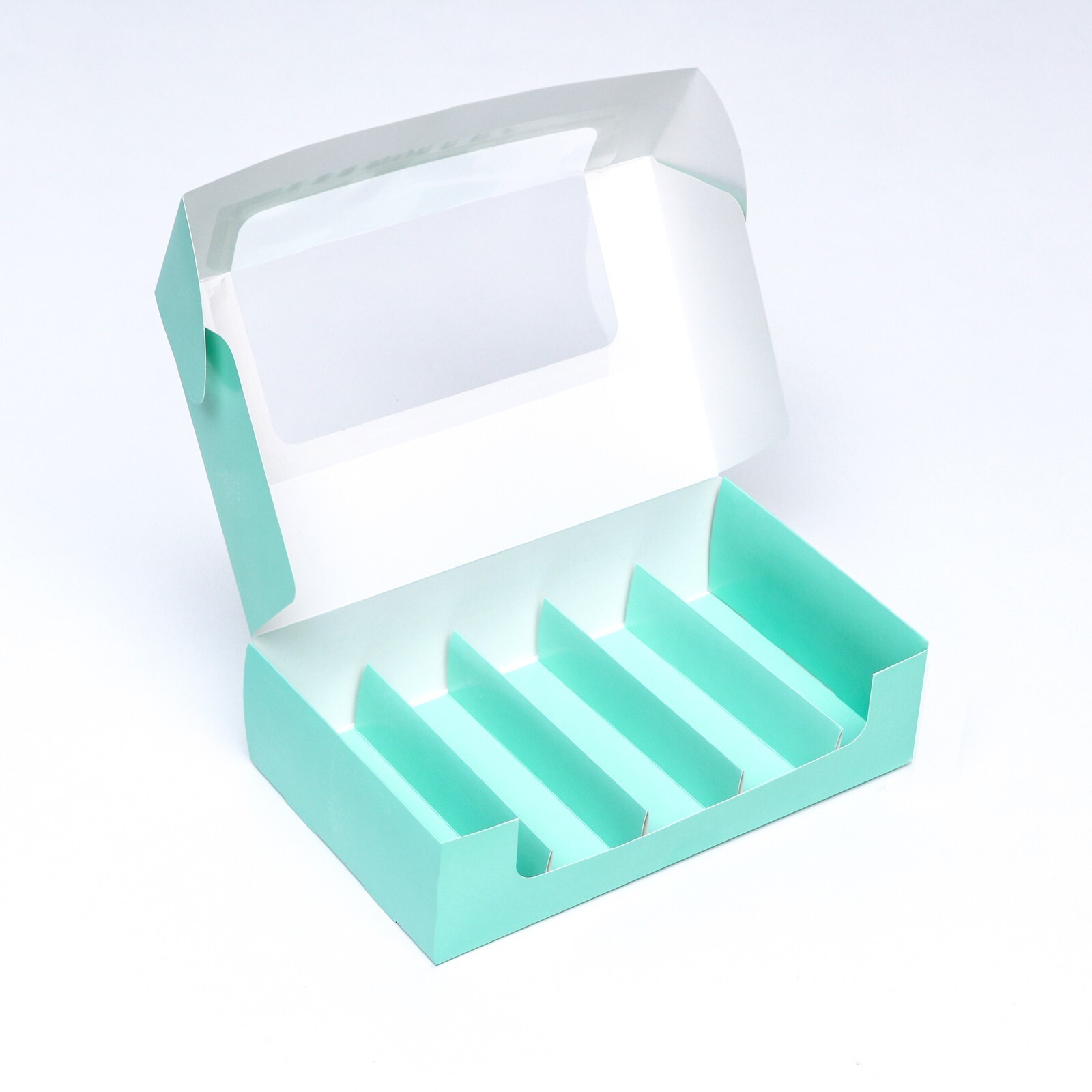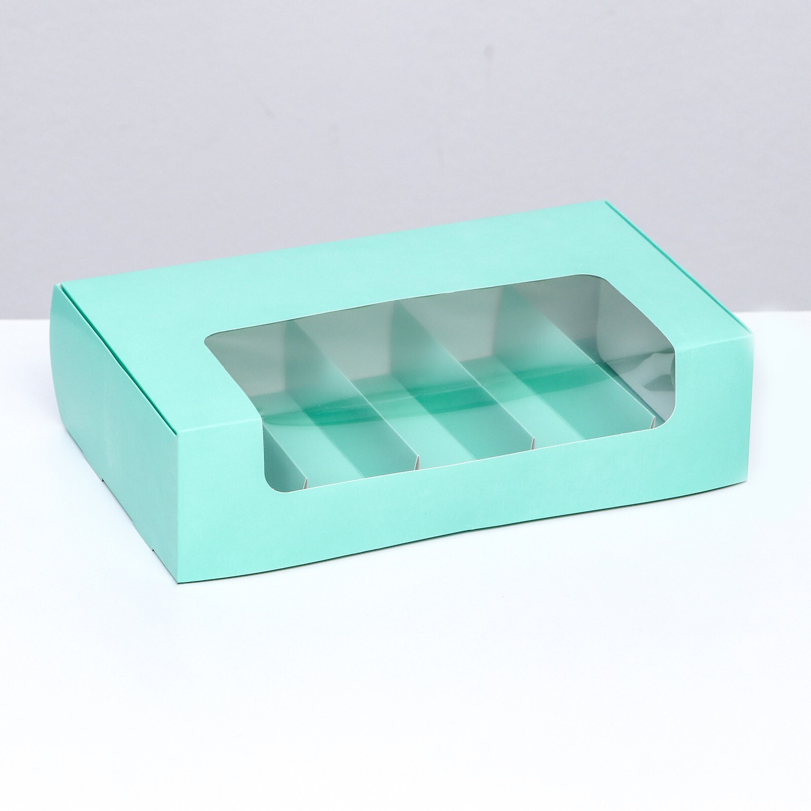 Коробка складная с окном под 5 эклеров зеленая, 25 х 15 х 6,6 см