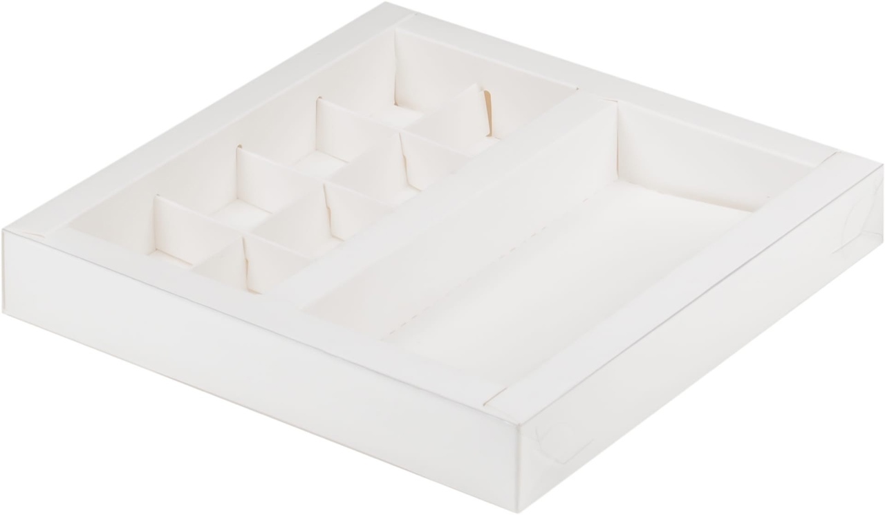 Коробка для 8 конфет и шоколадной плитки с ПВС крышкой (цвет белая)
