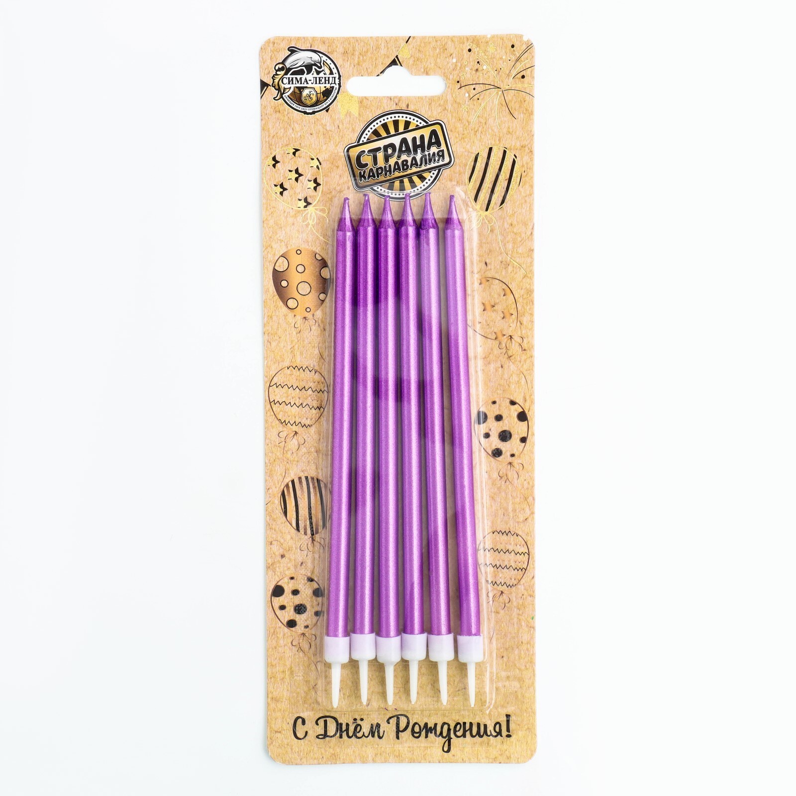 Свечи в торт "Ройс", 6 шт, высокие, 12,5 см, фиолетовый металл